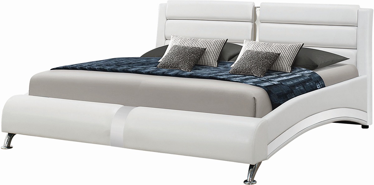 Decked out with unique good looks and sleek curves, the Jeremaine collection gives your bedroom the touch of elegance you crave. The supple leatherette upholstery invites luxurious comfort while the chrome-tone accents bring your contemporary taste to stylish new heights. Set the trend with this fashionable CoasterEssence collection.