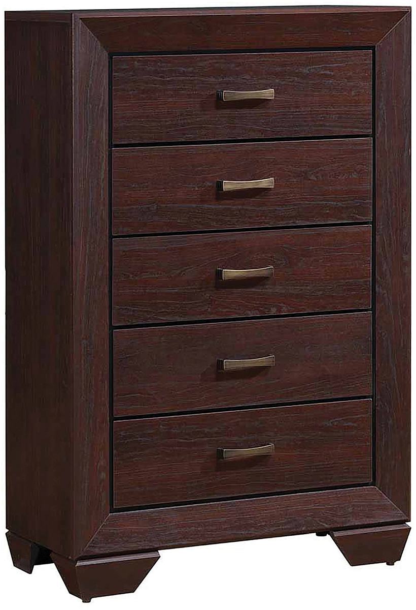 Feel refreshed every time you step into your bedroom with the Kauffman collection. The natural oak grain, tapered feet, recessed black grooves and picture-frame design meld rustic sentiments with contemporary flair. Coupled with storage options, this CoasterEveryday collection is exactly what you need for your ideal dream retreat.