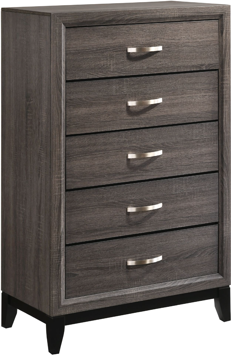 Organize your space in style with the Akerson Chest. The perfect combination of elegance and functionality. With its attractive grey finish and unique design, this chest adds a touch of elegance to any room. The five spacious drawers provide ample storage for your clothes, linens, or other household items.Read More