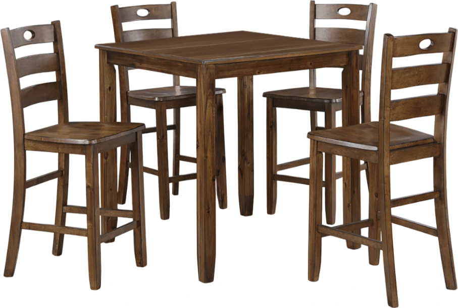 Add a touch of rustic charm to your dining space with this beautifully crafted counter-height dining group. Designed for both style and functionality, the rich woodgrain finish enhances the natural beauty of the set, while the sturdy construction ensures lasting durability.Read More
