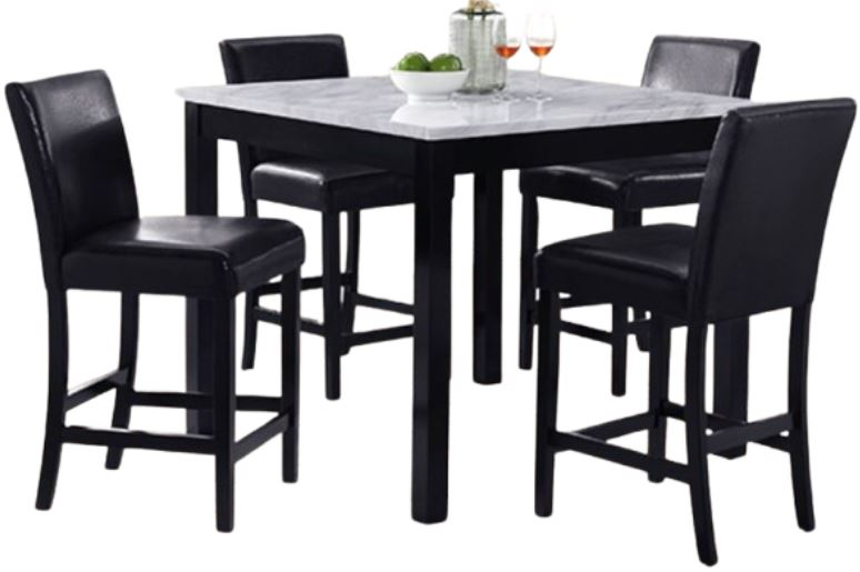 The Crown Mark Lennon 5-Piece Black Counter Height Dining Set features a sleek, modern design with a rich black finish. It includes a table and four matching stools with comfortable padded seats. Perfect for contemporary spaces, it combines style and functionality seamlessly.Read More
