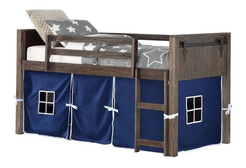 This beautiful low loft will add imaginative play and functionality to your child's room. The solid wood construction gives this bed superior durability. A brushed shadow finish makes a great addition to any decor. Also included is a tent kid for added play area under the bed.Read More