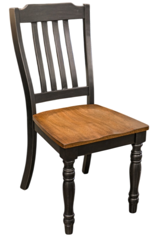 Stylish two-tone country look with contoured seats and slat back design, finished in black and brown