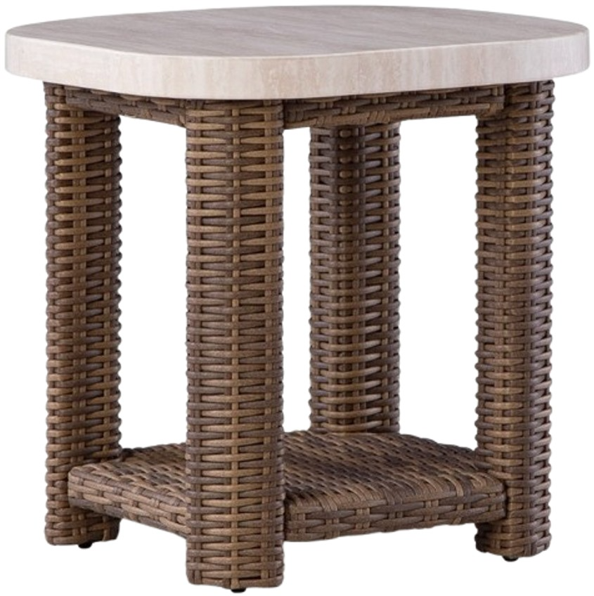 Get back to nature with the relaxed styling of this outdoor end table. Crafted with a sturdy aluminum frame and resin wicker, this piece offers exceptional durability and style. How about that smooth tabletop with softly rounded edges for holding nibbles, sips and more? And don't forget the lower shelf.Read More