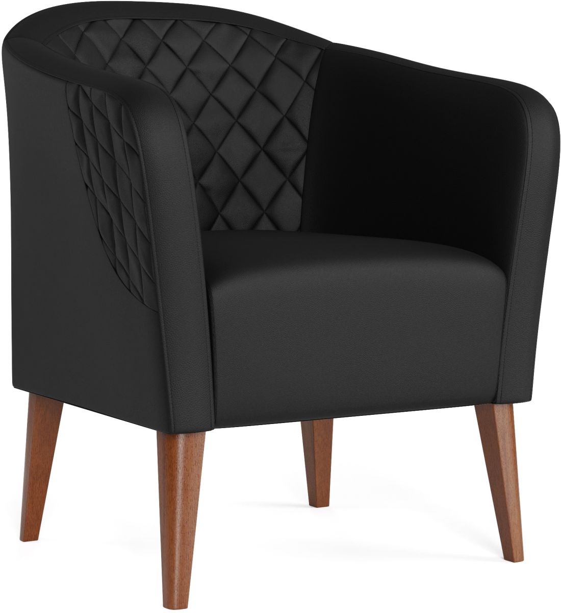 Weekender® Webster Faux Black Barrel Chair features diamond tufting on faux leather upholstery and is a transitional style barrel chair.Read More